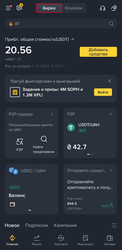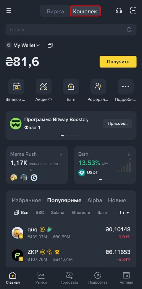 Основной аккаунт Binance ("Биржа")